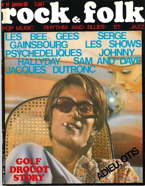 Revue Rock & Folk n° 14 de janvier 1968. In-4 agrafé de 70 pages, au format 27 x 21,5 cm. Couvertures photographiques avec Jacques Dutronc. Couvertures avec d'infimes frottis aux coins. Intérieur frais. Mensuel musical français consacré à la musique rock et pop, fondé en 1966 par Robert Baudelet, Jean Tronchot, Philippe Adler, Jean-Pierre Leloir et Philippe Koechlin. La revue connut la participation de nombreux photographes dont : Jean-Pierre Leloir, Claude Gassian, Pierre Terrasson, Gaëlle Ghesquière, Bruno Ducourant,Patrice Guino, Jean-Louis Rancurel, Dominique Tarlé, Bertrand Alary et Saddri Derradji. Nombreux articles sur le Rock, le blues, la soul, la pop dont : Serge Gainsbourg, Les Bee Gees, Johnny Hallyday, Sam and Dave, Jacques Dutronc, Otis Reding, etc. Nombreuses chroniques avec de très nombreuses photographies en noir et blanc. Rarissime édition originale, en très bel état de fraicheur de ce mythique n° 14.