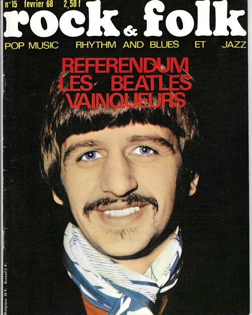 Revue Rock & Folk n° 15 de février 1968. In-4 agrafé de 70 pages, au format 27 x 21,5 cm. Couvertures photographiques avec Ringo Starr. Couvertures avec d'infimes frottis aux coins. Intérieur frais. Mensuel musical français consacré à la musique rock et pop, fondé en 1966 par Robert Baudelet, Jean Tronchot, Philippe Adler, Jean-Pierre Leloir et Philippe Koechlin. La revue connut la participation de nombreux photographes dont : Jean-Pierre Leloir, Claude Gassian, Pierre Terrasson, Gaëlle Ghesquière, Bruno Ducourant,Patrice Guino, Jean-Louis Rancurel, Dominique Tarlé, Bertrand Alary et Saddri Derradji. Nombreux articles sur le Rock, le blues, la soul, la pop dont : Les Beatles, Les Cream, France Gall, Richie Valens, Les Bee Gees, Otis Reding, etc. Nombreuses chroniques avec de très nombreuses photographies en noir et blanc. Rarissime édition originale, en très bel état de fraicheur de ce mythique n° 15.