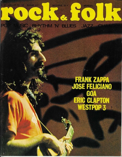 Revue Rock & Folk n° 42 de juillet 1970. In-4 agrafé de 102 pages, au format 27 x 21,5 cm. Couvertures photographiques avec Frank Zappa. Couvertures avec d'infimes frottis aux coins. Intérieur frais. Mensuel musical français consacré à la musique rock et pop, fondé en 1966 par Robert Baudelet, Jean Tronchot, Philippe Adler, Jean-Pierre Leloir et Philippe Koechlin. La revue connut la participation de nombreux photographes dont : Jean-Pierre Leloir, Claude Gassian, Pierre Terrasson, Gaëlle Ghesquière, Bruno Ducourant,Patrice Guino, Jean-Louis Rancurel, Dominique Tarlé, Bertrand Alary et Saddri Derradji. Nombreux articles sur le Rock, le blues, la soul, la pop dont : Frank Zappa, José Feliciano, Eric Clapton, Goa, Westpop 3, et la chronique " Le Jazz de Cabu ".etc. Nombreuses chroniques avec de très nombreuses photographies en noir et blanc. Rare édition originale, en très bel état de fraicheur.