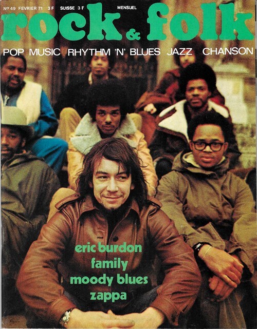 Revue Rock & Folk n° 49 de février 1971. In-4 agrafé de 98 pages, au format 27 x 21,5 cm. Couvertures photographiques avec Léo Ferré. Couvertures avec d'infimes frottis aux coins. Intérieur frais. Mensuel musical français consacré à la musique rock et pop, fondé en 1966 par Robert Baudelet, Jean Tronchot, Philippe Adler, Jean-Pierre Leloir et Philippe Koechlin. La revue connut la participation de nombreux photographes dont : Jean-Pierre Leloir, Claude Gassian, Pierre Terrasson, Gaëlle Ghesquière, Bruno Ducourant,Patrice Guino, Jean-Louis Rancurel, Dominique Tarlé, Bertrand Alary et Saddri Derradji. Nombreux articles sur le Rock, le blues, la soul, la pop dont : Eric Burdon & War, Family, Jimi Hendrix, Les Moody Blues, Frank Zappa, Léon Russell, etc. Nombreuses chroniques avec de très nombreuses photographies en noir et blanc. Rare édition originale, en très bel état de fraicheur.