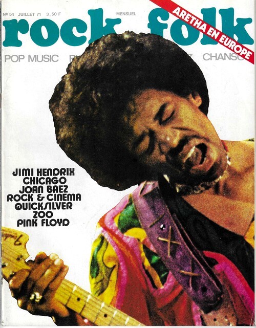 Revue Rock & Folk n° 54 de juillet 1971. In-4 agrafé de 88 pages, au format 27 x 21,5 cm. Couvertures photographiques avec Jimi Hendrix. Couvertures avec d'infimes frottis aux coins. Intérieur frais. Mensuel musical français consacré à la musique rock et pop, fondé en 1966 par Robert Baudelet, Jean Tronchot, Philippe Adler, Jean-Pierre Leloir et Philippe Koechlin. La revue connut la participation de nombreux photographes dont : Jean-Pierre Leloir, Claude Gassian, Pierre Terrasson, Gaëlle Ghesquière, Bruno Ducourant,Patrice Guino, Jean-Louis Rancurel, Dominique Tarlé, Bertrand Alary et Saddri Derradji. Nombreux articles sur le Rock, le blues, la soul, la pop dont : Jimi Hendrix, Chicago, Joan Baez, Quicksilver, Zoo, Pink Floyd, etc. Nombreuses chroniques avec de très nombreuses photographies en noir et blanc. Rare édition originale, en très bel état de fraicheur.