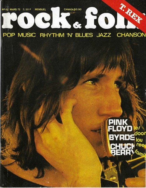 Revue Rock & Folk n° 62 de mars 1972. In-4 agrafé de 98 pages, au format 27 x 21,5 cm. Couvertures photographiques avec Roger Waters. Couvertures avec d'infimes frottis aux coins. Intérieur frais. Mensuel musical français consacré à la musique rock et pop, fondé en 1966 par Robert Baudelet, Jean Tronchot, Philippe Adler, Jean-Pierre Leloir et Philippe Koechlin. La revue connut la participation de nombreux photographes dont : Jean-Pierre Leloir, Claude Gassian, Pierre Terrasson, Gaëlle Ghesquière, Bruno Ducourant,Patrice Guino, Jean-Louis Rancurel, Dominique Tarlé, Bertrand Alary et Saddri Derradji. Nombreux articles sur le Rock, le blues, la soul, la pop dont : T.Rex, Pink Floyd, Les Doors, Family, Les Byrds, Chuck Berry, Lou Reed, Gato Barbieri, Jefferson Airplane, Joni Mitchell, etc. Nombreuses chroniques avec de très nombreuses photographies en noir et blanc. Planche de " Hamster Jovial " par Marcel Gotlib. Rare édition originale, en très bel état de fraicheur.