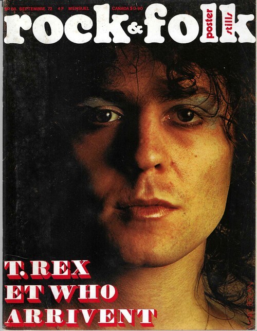 Revue Rock & Folk n° 68 de septembre 1972. In-4 agrafé de 110 pages, au format 27 x 21,5 cm. Couvertures photographiques avec T.Rex. Couvertures et intérieur frais. Complet du poster dépliant de Stephen Stills au format 40 x 27 cm. Le poster est solidaire de la couverture et plié sous cette dernière. Mensuel musical français consacré à la musique rock et pop, fondé en 1966 par Robert Baudelet, Jean Tronchot, Philippe Adler, Jean-Pierre Leloir et Philippe Koechlin. La revue connut la participation de nombreux photographes dont : Jean-Pierre Leloir, Claude Gassian, Pierre Terrasson, Gaëlle Ghesquière, Bruno Ducourant, Patrice Guino, Jean-Louis Rancurel, Dominique Tarlé, Bertrand Alary et Saddri Derradji. Nombreux articles sur le Rock, le blues, la soul, la pop dont : T.Rex, Les Who, Elvis Presley, John Lennon & Yoko Ono, Véronique Samson, Paul McCartney, Country Joe, etc. Nombreuses chroniques avec de très nombreuses photographies en noir et blanc. Planche de " Hamster Jovial " par Marcel Gotlib. Rare édition originale, en très bel état de fraicheur et surtout complète du poster.