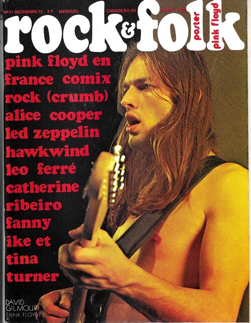 Revue Rock & Folk n° 71 de décembre 1972. In-4 agrafé de 124 pages, au format 27 x 21,5 cm. Couvertures photographiques avec David Gilmour. Couvertures et intérieur frais. Complet du poster dépliant de Pink Floyd au format 40 x 27 cm. Le poster est solidaire de la couverture et plié sous cette dernière. Mensuel musical français consacré à la musique rock et pop, fondé en 1966 par Robert Baudelet, Jean Tronchot, Philippe Adler, Jean-Pierre Leloir et Philippe Koechlin. La revue connut la participation de nombreux photographes dont : Jean-Pierre Leloir, Claude Gassian, Pierre Terrasson, Gaëlle Ghesquière, Bruno Ducourant, Patrice Guino, Jean-Louis Rancurel, Dominique Tarlé, Bertrand Alary et Saddri Derradji. Nombreux articles sur le Rock, le blues, la soul, la pop dont : Pink Floyd, Alice Cooper, Led Zeppelin, Hawkwind, Léo Ferré, Catherine Ribeiro, Ike & Tina Turner, Les Comix, etc. Nombreuses chroniques avec de très nombreuses photographies en noir et blanc. Planche de " Hamster Jovial " par Marcel Gotlib. Rare édition originale, en très bel état de fraicheur et surtout complète du poster.