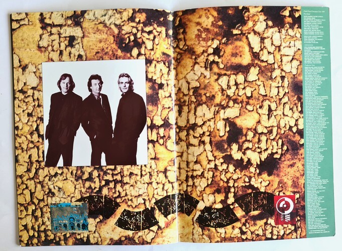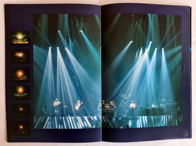 Pink Floyd Music / Hill Shorter LTD 1989. In-4 agrafé de 30 pages au format 33 x 23 cm. Couvertures illustrées. Magnifique et luxueux programme de la tournée européenne de Pink Floyd, qui eut lieu en 1989. Plats et intérieur frais, malgré une annotation sur la page consacrée à David Gilmour. Magnifiques et très nombreuses photographies couleurs des musiciens. Rare édition originale anglaise en superbe état général. Collection personnelle.