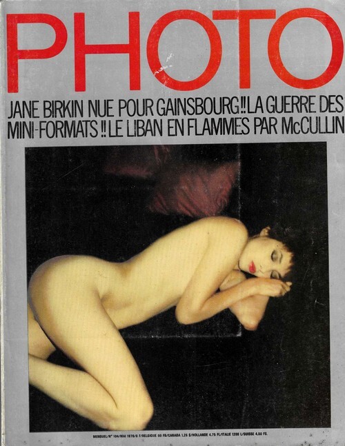 Union des Editions Modernes / Revue Photo n° 164 de mai 1976. In-4 agrafé de 216 pages au format 27,5 x 21,5 cm. Couverture avec photo de Jane Birkin. Plats avec petits frottis. Intérieur frais. Photograhies en couleurs de Jane Birkin par Serge Gainsbourgn accompagnées de légendes et d'un texte inédit de Serge Gainsbourg. Nombreuses contributions et photographies, dont Irina Ionesco, Donald McCullin, Martine Franck, Neal Slavin, Zille, etc. Bel état général. Edition originale. Rare