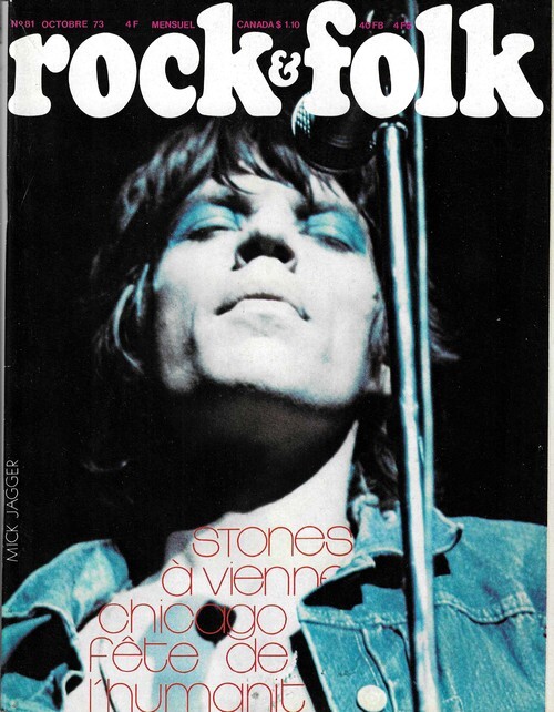 Revue Rock & Folk n° 81 de octobre 1973. In-4 agrafé de 110 pages, au format 27 x 21,5 cm. Couvertures photographiques avec Mick Jagger. Couverture en superbe état. Complet du poster dépliant de Catherine Ribeiro au format 40 x 27 cm. Le poster est solidaire de la couverture et plié sous cette dernière. Mensuel musical français consacré à la musique rock et pop, fondé en 1966 par Robert Baudelet, Jean Tronchot, Philippe Adler, Jean-Pierre Leloir et Philippe Koechlin. La revue connut la participation de nombreux photographes dont : Jean-Pierre Leloir, Claude Gassian, Pierre Terrasson, Gaëlle Ghesquière, Bruno Ducourant, Patrice Guino, Jean-Louis Rancurel, Dominique Tarlé, Bertrand Alary et Saddri Derradji. Nombreux articles sur le Rock, le blues, la soul, la pop dont : Catherine Ribeiro, Rolling Stones, Chicago, Weather Report, Larry Coryell, Randy Newnam, Les Comix, Fête de l'Humanité, etc. Nombreuses chroniques avec de très nombreuses photographies en noir et blanc. Planche de " Hamster Jovial " par Marcel Gotlib. Edition originale en superbe état général. Rare complet du poster.
