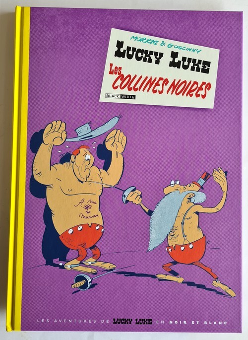 Editions Black & White 2025. In-4 cartonnage éditeur de 65 pages au format 25 x 35 cm. Couverture illustrée. Contient l’intégralité de l’album en version noir et blanc avec dessins de Morris sur scénario de René Goscinny, enrichi de 16 pages de cahier graphique couleur reprenant des reproductions de planches originales, des croquis et illustrations rares, des références cinématographiques, l’inventaire le plus exhaustif possible des couvertures du journal Le Moustique réalisées par Morris, l’indication bibliographique ou audiovisuelle systématique des informations citées dans les articles, et des anecdotes peu connues, de nombreux repères chronologiques sur l’histoire de l’Ouest en relation avec le récit concerné. Tirage total limité à 1300 exemplaires numérotés. Etat de neuf. Edition originale. Epuisé.