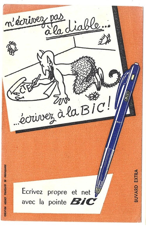 Bic, sans date. Buvard publicitaire pour les stylo-billes " Bic ", illustré par Jean Effel au format 20 x 13,5 cm. Edition originale en état de neuf.