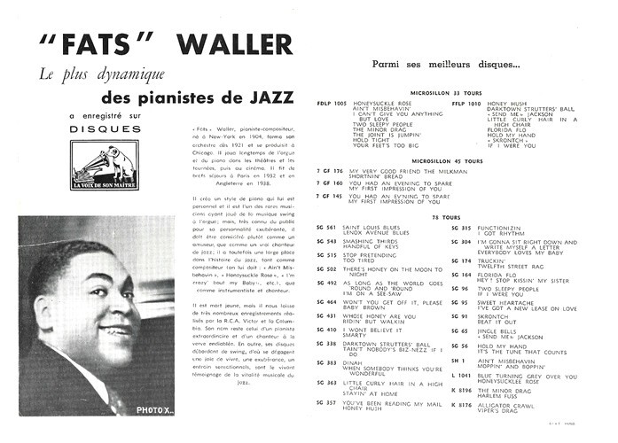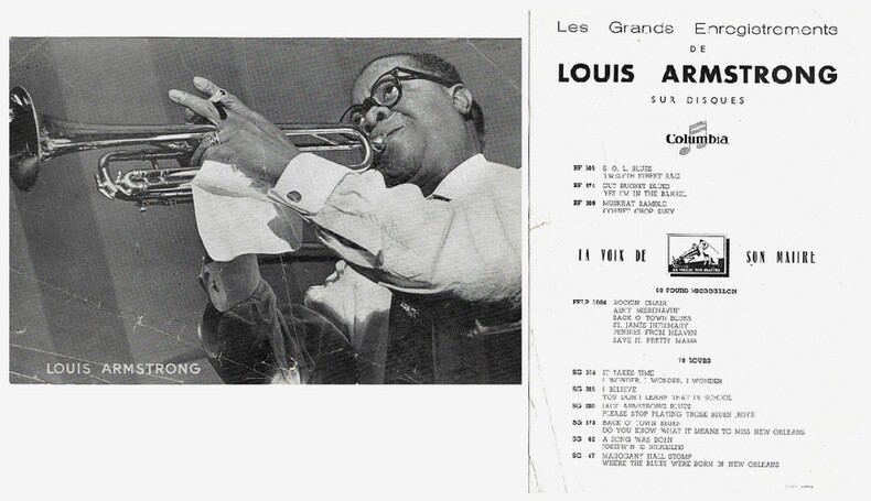 Superbe lot consacré au Jazz, datant des années 1950, composé de 9 discographies avec photos de Dizzy Gillepsie - Claude Luter - Tab Smith - Don Byas - Alix Combelle - Louis Armstrong - " Fats " Waller - Sydnet Bechet - Gerry Mulligan quartet with Chet Baker. Différents formats. Assez bel état général. Rare ensemble.