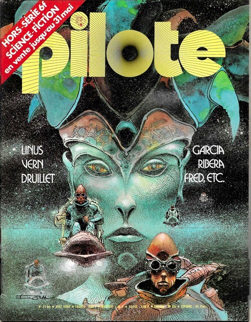 Editions Dargaud / Pilote Hors Série 21 bis de février 1976 Spécial Science-Fiction. In-4 agrafé de 66 pages au format 27,5 x 21,5 cm. Superbe couverture illustrée par Enki Bilal. Plats et intérieur frais. Contient des BD en couleurs et des nouvelles illustrées par Enki Bilal, Linus, Vern, Philippe Druillet, Luis Garcia, José Ribera, Fred, Brocal Remohi, Mose, etc. Edition originale en superbe état général de fraicheur.