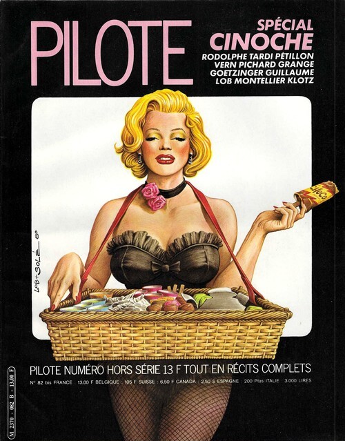 Editions Dargaud / Pilote Hors Série 82 bis de mars 1981 Spécial Cinoche. In-4 broché de 82 pages au format 27,5 x 21,5 cm. Superbe couverture illustrée par Jean Solé. Dos carré muet. Plats et intérieur frais. Contient des BD en couleurs et en noir illustrées, de Rodolphe, Vern, Jacques Tardi, Dominique Grangé, Georges Pichard, Annie Goetzinger, Jacques Lob, Chantal Montellier, Florence Cestac, Victor Mora, Usero, Claude Klotz, etc. Edition originale en superbe état général de fraicheur.