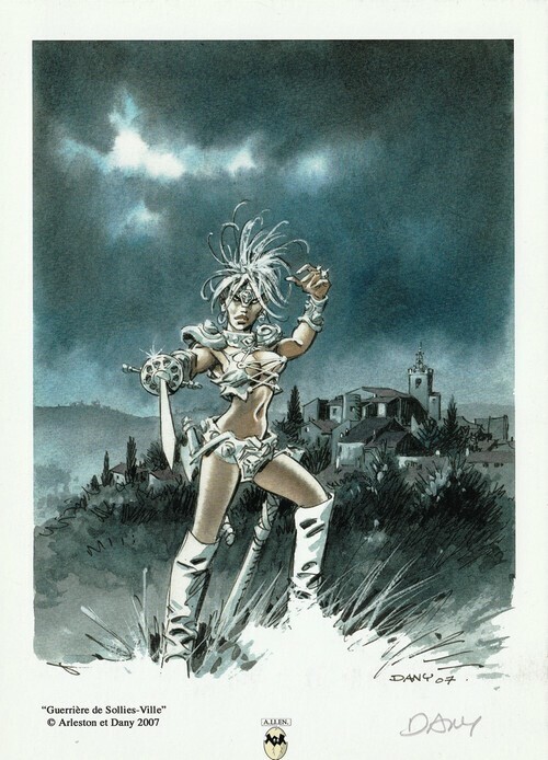 Ex-libris inédit illustré et signé par Dany, intitulé " Guerrière de Sollies-Ville 2007 ". Format 21 x 14,5 cm. Etat de neuf.