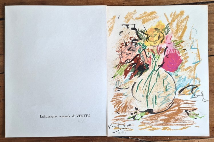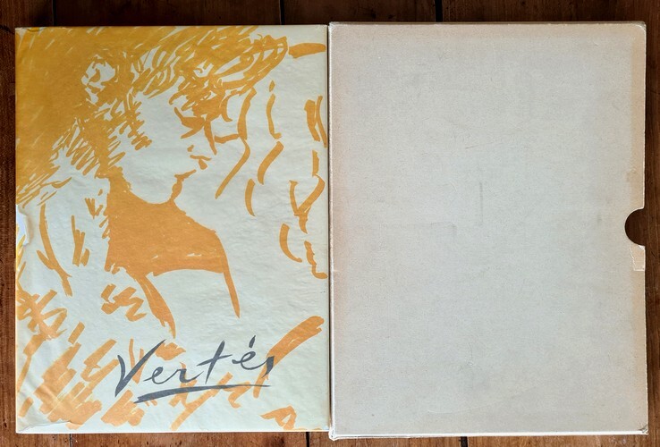 Paris, Ouvrage réalisé par Jacques Vialetay. Se trouve chez Trinckvel, 1961. In-4 broché de 152 pages au format 32,5 x 3,5 x 25 cm. Couverture illustrée en sérigraphie. Dos carré. Plats et intérieur frais. Complet du papier cristal d'origine, avec petits manques épars. Monographie de Marcel Vertès par Claude Roger-Marx, avec plus de 100 reproductions en noir et en couleurs, in et hors texte ( aquarelles, dessins à l'encre ou au crayon, gravures, lithographies ). Un des 300 exemplaires numérotés sur grand vélin blanc enrichis d'une lithographie originale en couleurs de Marcel Vertès ( n° 218 ). Livre glissé sous carton de protection. Edition originale en état superbe, proche du parfait.