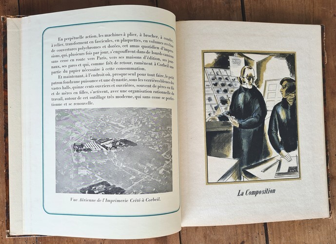Cet ouvrage est agrémentée de 3 dessins en deux couleurs ainsi que de nombreuses photos. Georges Lecomte (Mâcon 1867 - Paris 1958) est un romancier et auteur dramatique français, auteur également d'études littéraires, historiques et artistiques. Il retrace dans cet ouvrage l'histoire de l'imprimerie Crété de sa création à 1929. L'imprimerie Crété est aujourd'hui une véritable institution dans la ville de Corbeil-Essonnes. Elle fut la première imprimerie a s'être installé dans la ville en 1974, elle ne prit le nom de Crété que lorsque Louis-Simon Crété l'a racheta en 1827. Pendant la première période du XXé siècle, l'entreprise a travaillé pour de grands titres nationaux (Paris-Match, ELLE, Art et décoration, Télé 7 jours,...). En 1980, l'entreprise change son nom, Crété-Néogravure, pour Périodic Brochage puis en 1998, elle deviendra une filiale du groupe Hachette et sera rebaptisé Hélio Corbeil. En mars de cette année, Quebecor World, le numéro un mondial de l'impression, l'a rachète au groupe Hachette. Griffures sur la couverture, manques de papiers.