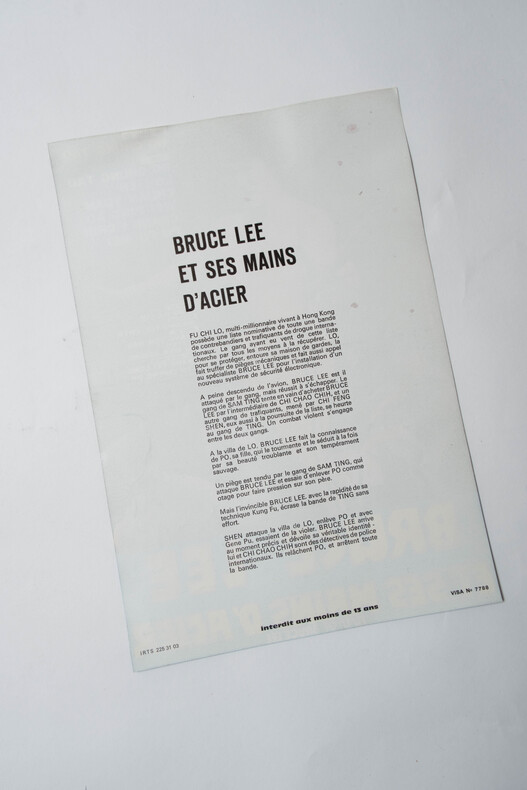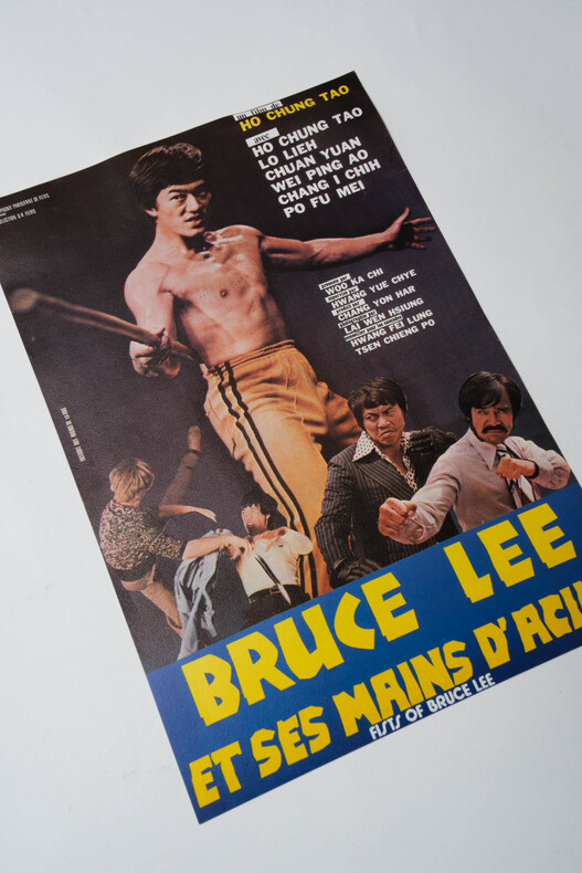 France, La Compagnie de Films, Paris, 1979. Superbe affichette originale, illustrée, d'exploitation en salles, pour la sortie du film Bruce Lee et ses mains d'acier ( Fists of Bruce Lee ), réalisé en 1979 par Ho Chung Tao. Synopsis au verso. Format 32 x 22 cm. On trouve dans les rôles principaux : Ho Chung Tao, Chang Ichih, Lo Lieh, Chuan Yuan, Wei Ping Ao, etc. Superbe état de fraicheur. Rare. Le film fait partie du mouvement dit : Bruceploitation.