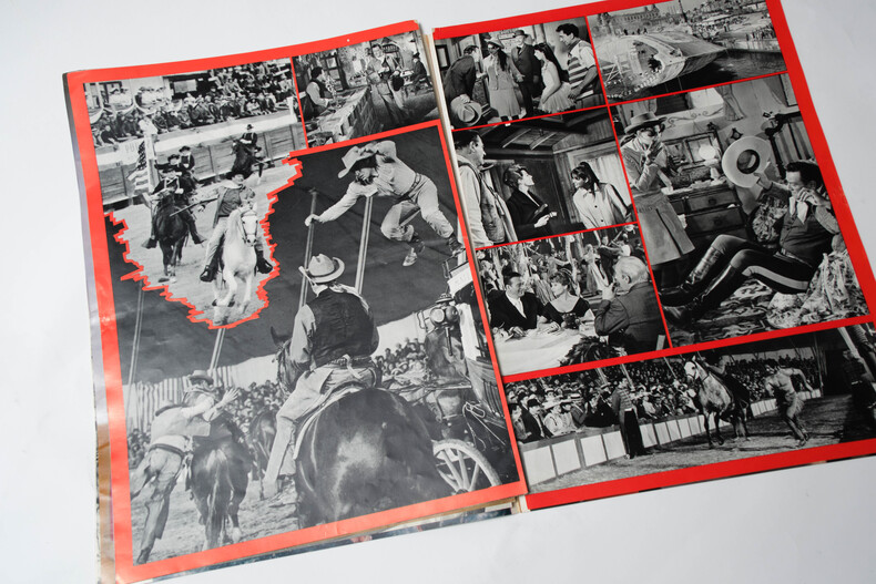 The Rank Organisation1964. Superbe dossier de presse en feuilles de 24 pages au format 46 x 33,5 cm. Magnifiques couvertures illustrées. Rare dossier de presse pour le film américain : Le Plus Grand Cirque du monde ( Circus World ), réalisé en 1964 par Henry Hathaway. Synopsis accompagnés de très nombreuses photographies en noir et en couleurs dont les portraits avec signature en facsimilé autographe des acteurs principaux, pouvant faire office de poster. On trouve dans les rôles principaux : John Wayne, Claudia Cardinale, Rita Hayworth, Lili Alfredo, Lloyd Nolan, Richard Conte, etc. Superbe état de fraicheur malgré de petits frottis et tassements aux coins. Très rare.