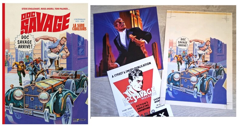 Editions Neofelis 2025. In-4 cartonnage éditeur de 168 pages au format 30,5 x 21,5 cm. Magnifique couverture inédite de Jean Frisano. Dos Carré. Plats et intérieur parfaits. Cahiers cousus. Contient, pour la première fois en version complète, et restaurée, les 8 épisodes américains en version couleurs de Doc Savage, personnage inventé par Lester Dent, en 1933 et publiés partiellement dans la revue française " Titans ", des éditions, Lug, à la fin des années 70. Magnifiques dessins en couleurs de Ross Andru, encrés par Tom Palmer, sur scénarios de Steve Englehart. Edition originale, de luxe, tirée uniquement à 250 exemplaires, sous couverture " alternative " avec 3 ex-libris bonus, en couleurs. Etat de neuf.