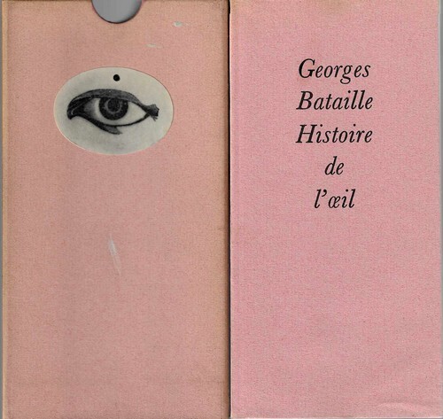 Jean-Jacques Pauvert 1967. In-12 broché de 106 pages au format 18 x 9 cm glissé sous emboitâge rose orné d'un oeil énigmatique. Couvertures roses rempliées avec titre imprimé. Plats et intérieur frais. Superbes maquettes de Pierre Faucheux. Un des 10 000 exemplaires numérotés sur bouffant alfa ( n° 1993 ). Première édition publique avec pour la première fois le plan en facsimilé autographe pour une suite de " l'histoire de l'oeil ". Superbe état général.