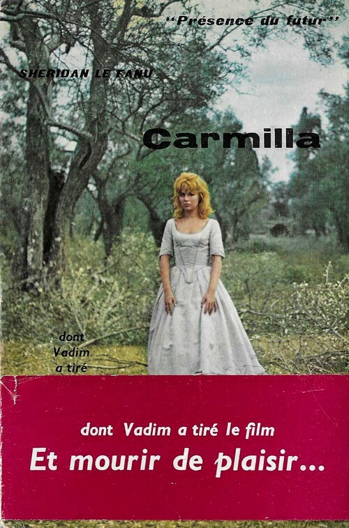 Editions Denoël / Collection Présence du Futur n° 42 de 1960. In-12 broché de 222 pages au format 18 x 12 cm. Couvertures muettes. Dos carré. Livre relié directement sous la belle et rare jaquette avec photographie de Annette Vadim, extraite du film de Roger Vadim " Et mourir de Plaisir ", sorti en 1960 et accompagné du très rare bandeau. Tirage en service de presse. Perforé presse au 4ème plat. Le long métrage est l'adaptation de la nouvelle de Sheridan Le Fanu, Carmilla sur scénario de Roger Vadim, Roger Vailland, Claude Brulé et Claude Martin. On trouve dans les rôles principaux : Annette Vadim, Mel Ferrer, Elsa Martinelli, Marc Allégret, R.J. Chauffard, etc. Edition originale chez l'éditeur de cette superbe histoire de Vampires. Rare dans un tel état de fraicheur et complet du bandeau et de la jaquette.