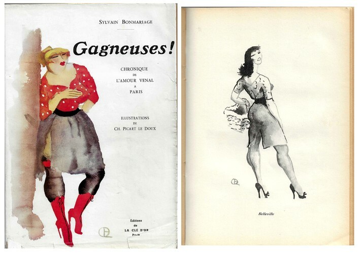 Editions de la Clé d'or 1951. In-8 broché de 183 pages au format 26 x 18 cm. Couverture avec titre imprimé. Dos carré muet. Plats et intérieur frais. Complet de la magnifique jaquette illustrée en couleurs avec petites restaurations au verso et minuscules déchirures au bas. Livre protégé par un rhodoïd. Couverture et sublimes illustrations en noir in et hors texte par Charles Picart Le Doux. Rare livre sur la vie des prostituées Parisiennes. Tirage unique à 5000 exemplaires numérotés sur papier d'édition ( n° 3451 ). Rare édition originale en superbe état.
