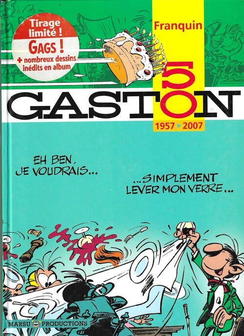 Editions Marsu Productions 2007. In-4 cartonnage éditeur de 48 pages au format 21,5 x 30 cm. Couvertures illustrées. Dos carré. Plats et intérieur frais. Complet du sticker en couverture. Dessins et scénarios de André Franquin. Textes de Yvan Delporte et Frédéric Jannin. Gags + nombreux dessins inédits de André Franquin. Tirage limité à 100 000 exemplaires, après 1500 hors commerce. Très bel état général. Edition originale.