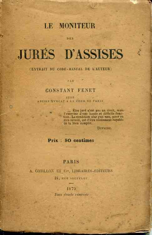 ,Paris, Cotillon et Cie 1879, 70 pp., 1 vol. in 12 br. rouss.
