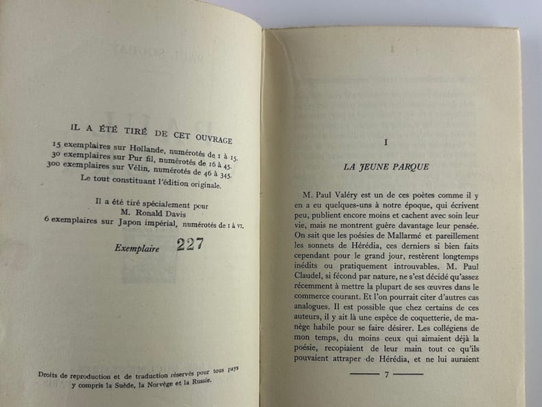 (Charleroi), Richard-Massé éditeur, (1946) ; in-8°,broché de 76pp.,1f.;portrait inédit de Valéry par Suzanne Van Damme en frontispice.