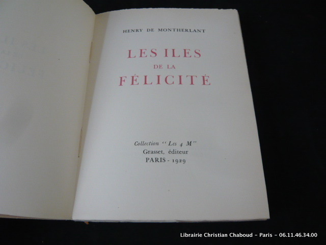 1929 Paris, Grasset, 1929, In douze,100 pp, broché, bon état,dos légèrement déchiré,