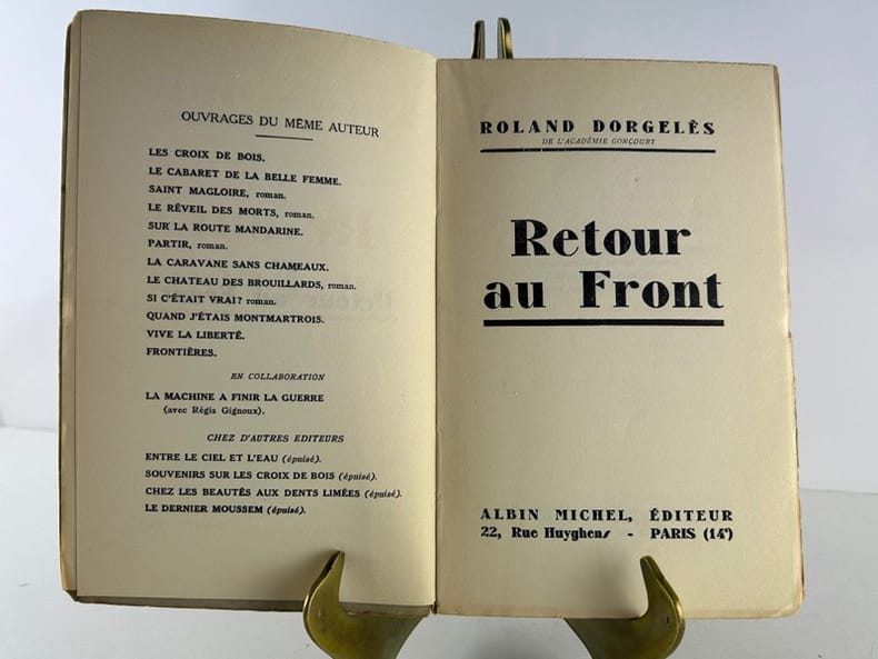 L'hiver 1939, Roland Dorgelès est Correspondant de guerre et entreprend de faire le tour des avants-postes français. Il en tire une série d'articles où, pour la première fois, il emploie le terme de "Drôle de guerre". Ses articles sont regroupés en un ouvrage "Retour au front" qui, dès sa parution, fut interdit et pilonné par les Allemands.