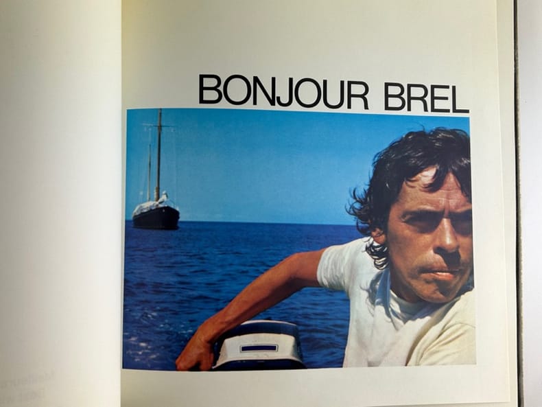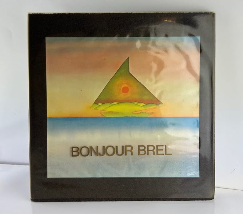 Paris, Omnium chimique 1997, in-4 carré, 31 x 31 cm, cartonnage éditeur velours, vignette contrecollée, rodhoïd titré, np. Lettre à l'éditeur par André Delvaux. Lettre à Jacques par Arthur Gelin, BonjourBrel... et à bientôt par Paul Ide.