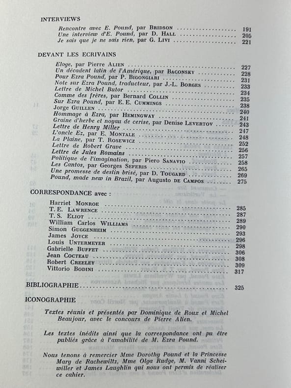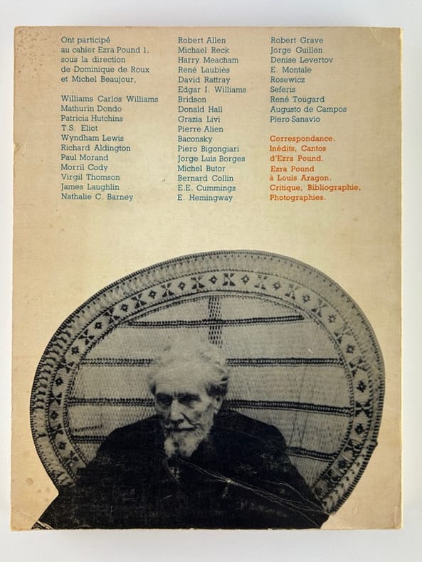 Paris, Les Cahiers de L'Herne 1965, in-4, broché, 328p. Couverture défraîchie. Bon exemplaire de travail, sans annotations. Correspondance - Inédits, Cantos d'Ezra Pound. Ezra Pound et Louis Aragon. critique, Bibliographie, Photographies.