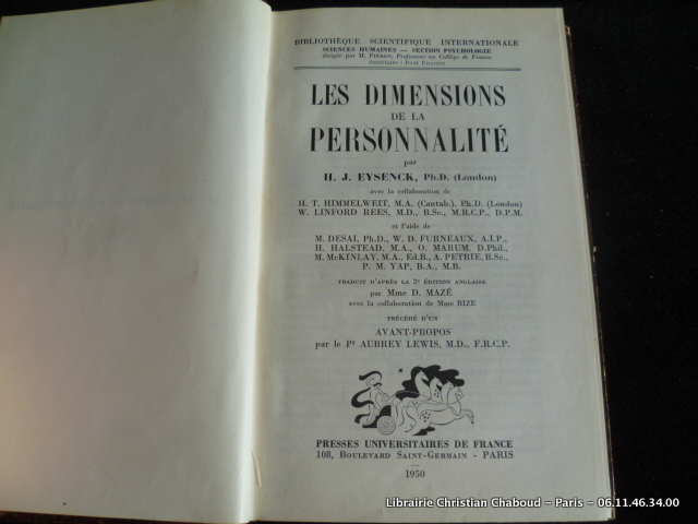 Presses Universitaires De France broché Bristol illustré Paris 1950 "collection "" biliothèque scientifique internationale "" - 314 pages en format 14 - 23 cm - TBE"