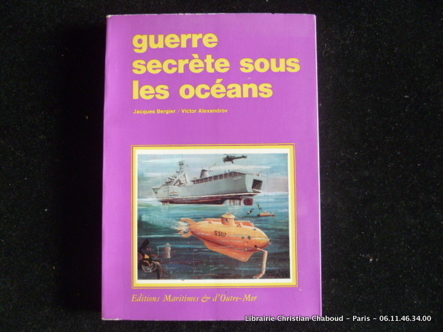 8 planches hors-texte de photographies en noir et blanc 1ere édition, 1970 Contents, Chapitres : Prologue - Des origines au lac de Töplitz - Capitaine courageux et sous-marins atomiques - Excalibur and company - Hommes-grenouilles et torpilles vivantes - Les navires espions - De la soucoupe plongeante aux soucoupes sous la mer - On tue sous les océans - Les voix de la mer - Les dauphins entrent en guerre - Espace intérieur et espace extérieur - Espionnage et contre-espionnage en mer et sous les mers - Villes et bases dans l'océan - Le pétrole sous-marin - Epilogue - cf : Plongée, sous-mariniers, scaphandres, plongeurs infime déchirure sans manque au bas du plat supérieur, sinon bel exemplaire, frais et propre, bien complet des 8 planches hors-texte