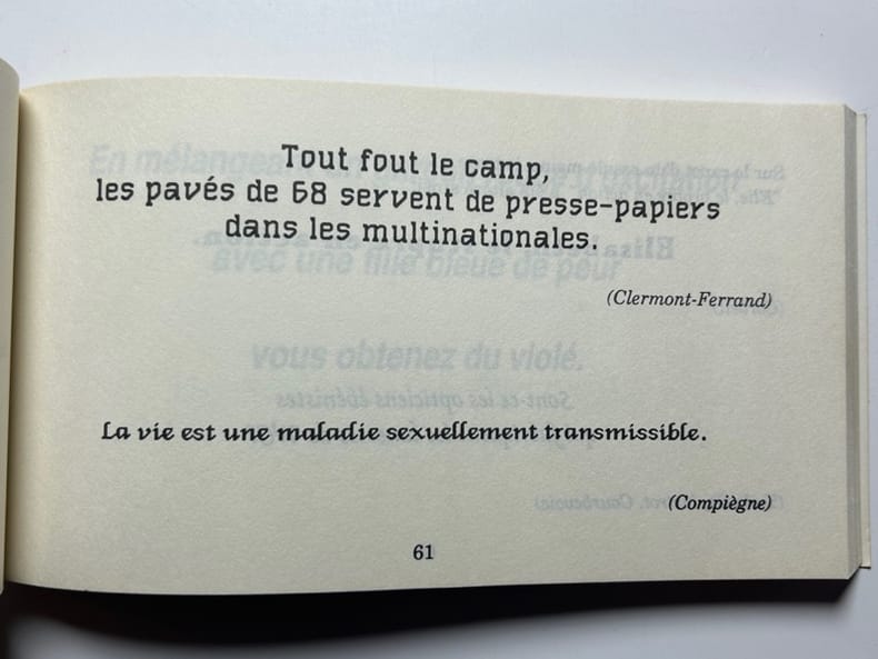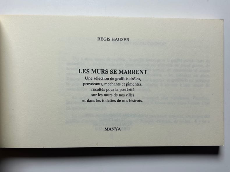 Paris, Manya, 1991, in-12 à l'italienne, broché, 190 pages. Bon état. Citations, graffitis