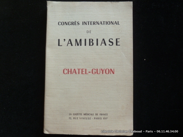 Congrès international de lamibiase et de lensemble des parasitoses intestinales de ladulte et de lenfant, Chatel-Guyon 15 et 16 septembre 1950.Rapports et communications précédé de : Chatel-Guyon à travers les ages. ...................... Photos sur demande ..........................