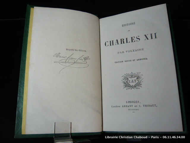 Oeuvre historique de Voltaire consacrée à Charles XII roi de Suède (1697-1718). L'ouvrage parut pour la première fois en 1731. “Dès son apparition, l'«Histoire de Charles XII» obtint un grand succès, et ouvrit glorieusement à son auteur la carrière de l'Histoire” (Hoefer). Napoléon lisait cet ouvrage durant la campagne de Russie. Brunet TM 27681; Hoefer NBG XLVI/384.