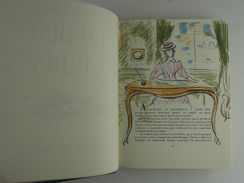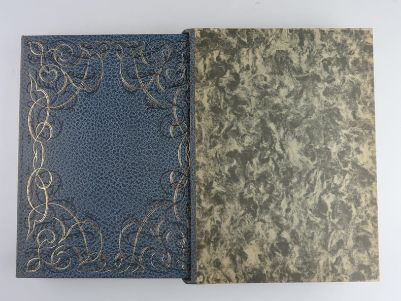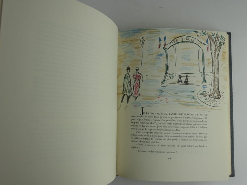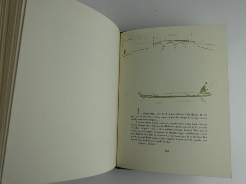 Paris-Bièvres, Pierre de Tartas, 1973, 20x26cm, plein skyvertex bleu façon maroquin, plats décorés de volutes noir et or, tête dorée, sous emboîtage, 188 pages. Bel exemplaire.