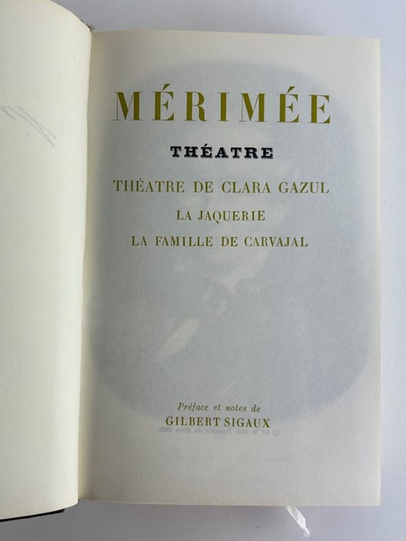 Charpentier Oeuvres de Prosper Mérimée Relié 1865 In-12, (18.5x11 cm), relié demi-chagrin, dos à 5 nerfs titré avec fleurons, 447 pages, notice sur Clara Gazul, comédienne espagnole ; rousseurs, petits manques sur le cuir, assez bon état. Livraison a domicile (La Poste) ou en Mondial Relay sur simple demande.