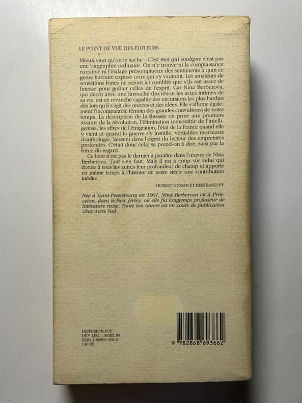 1990 1990. Nina Berberova - C'est moi qui souligne / Babel 1990