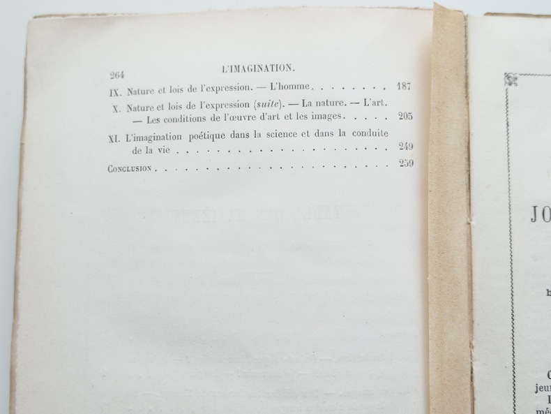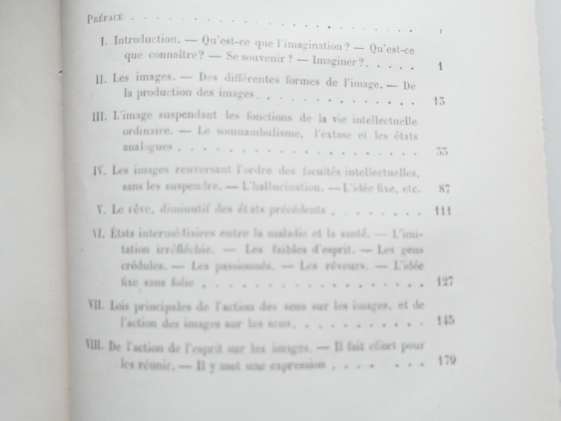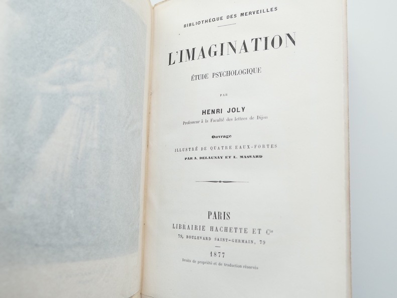 Collection de la “Bibliothèque des merveilles” publiée sous la direction de E. Charton. Pour traiter de l’imagination, le présent ouvrage aborde l’image, le somnambulisme, l’extase, les hallucinations, le rêve, les arts et les sciences. L’auteur avait également écrit “L'instinct”, “L’homme et l’animal” ainsi que des ouvrages sur la philosophie.