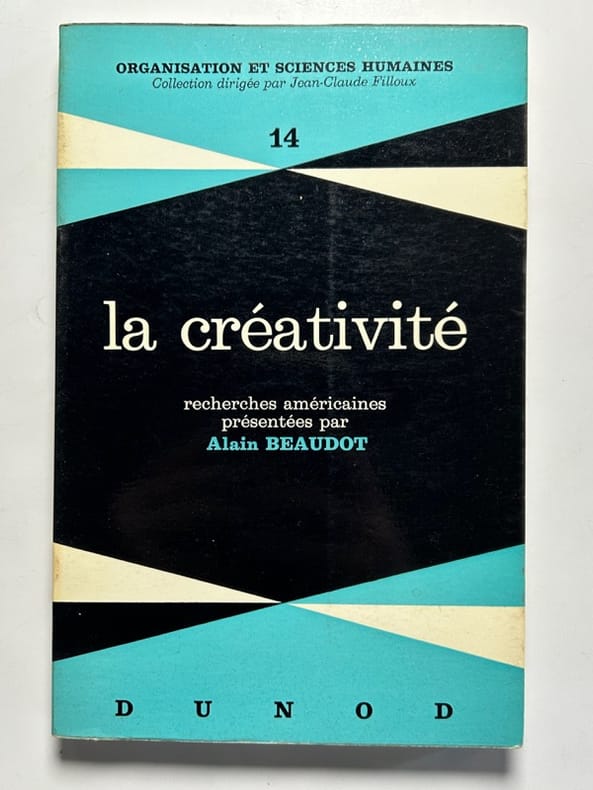 1ere traduction en français, 1973 Contents, Chapitres : Avant-propos, préface, table, xii, Texte, 288 pages - Introduction de J.P. Guilford : La créativité - 1. Identification de la créativité : J.W. Getzels et P.W. Jackson : L'adolescent créatif et l'adolescent intelligent - M.A. Wallach et N. Kogan : Nouvelle appréhension du problème de la distinction, intelligence-créativité - E.P. Torrance : La validité prédictive des tests de pensée créative - Brewster Ghiselin, Roger Rompel et Calvin M. Taylor : Check-list du processus créatif - 2. La personnalité créative : F. Barron : Disposition pour l'originalité - D.W. Mac Kinnon : Nature et culture du talent créatif - L.S. Kubie : Le préconscient et la créativité - D.C. Mc Clelland : Psychodynamique des physiciens créatifs - 3. Education et environnement : S.J. Parnes : Education et créativité - P.S. Weisberg et K.J. Springer : Le milieu familial dans la fonction créative - E.P. Torrance et D.C. Dauw : Rêves et aspîrations de trois groupes d'adolescents créatifs et d'un groupe témoin comparable - J.S. Bruner : Conditions de la créativité - J.P. Guilford : La créativité, rétrospective et prospective - Annexe : Le test de créativité de M.A. Wallach et N. Kogan - Bibliographie générale et index couverture à peine jaunie, sinon très bon état, intérieur frais et propre