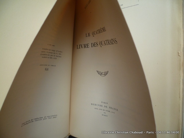 1924 Paris, Mercure de France, 1923-1924-1925, 4 volumes in 8° brochés, 81, 77, 77 et 77 pages ; à toutes marges ; non coupés (sauf le "premier livre").