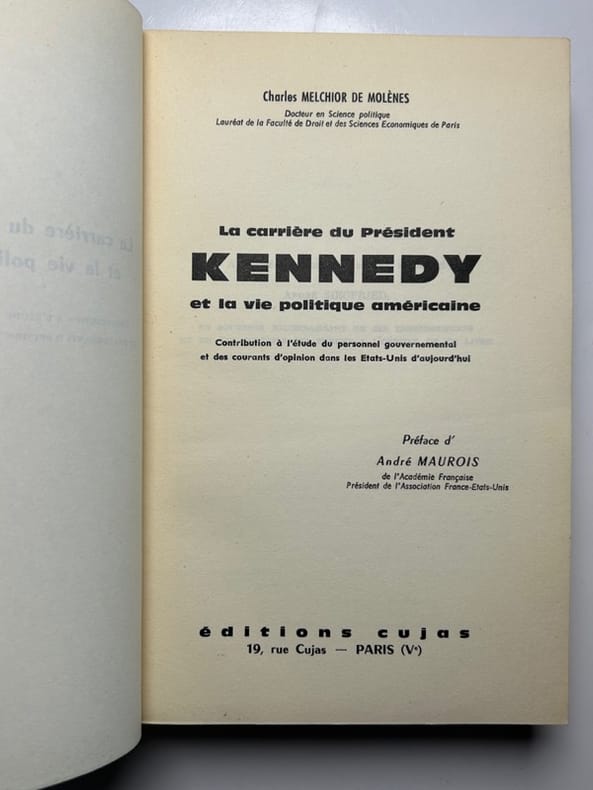 Edition originale. Long ENVOI de l'auteur "au Président et à Madame Pierre Courant". Député, maire du Havre et trois fois ministre sous la IVeme République, Pierre Courant est cité à la fin de l'ouvrage. Frottis à un mors, par ailleurs fendu sur 3,5 cm, petites taches d'encre sur le 1er plat, sinon un bon exemplaire.
