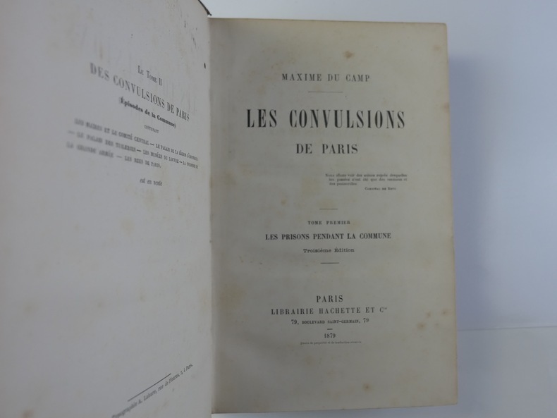 Paris Hachette & Cie 1879 Grand In 8 Demi-basane havane . Dos à 4 nerfs , titre , auteur , tomaison en cuir noir et double filets dorés . Tranches non rognées tâchées de rousseurs . Edité de 1879 à 1880 sur bon papier présentant des rousseurs . Nombreuses pièces justificatives . Table des noms propres . Histoire France et Gaule . Commune de Paris - 544 p. + 506 p. + 516 p. + 542 p., ensemble d'environ 5 kg .