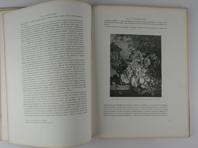 Paris, Jules Renouard et cie, Editeurs, sd, in-4 (34,5 x 26,5 cm), percaline noire plaques dorées et colorées au centre, légèrement défraîchies, dos orné, Publications en livraisons, contenant chacune un texte de huit pages, avec 4 ou 5 gravures. Ce recueil rassemble : Nicolas Berghem, Albert Cuyp, Karel Dujardin, Jean Van Huysum, Simon-Mathurin Lantara, Claude Lorrain, Jean-Babptiste Monnoyer, Paul Potter, Jacques Ruysdael, Adrien Van de Velde, Joseph Vernet, Antoine Waterloo. Relié in-fine la liste des maîtres publiés dans les 100 premières livraisons. Ex-libris Camille Cé. Rares rousseurs. Bon état.