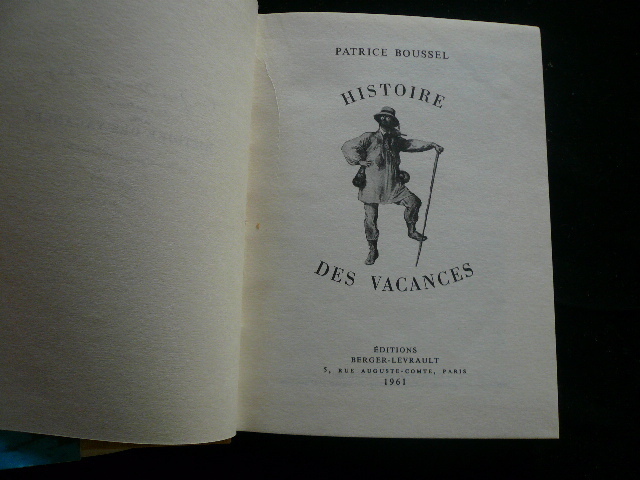 Paris, éd. Berger-Levrault, 1961, in-8, cartonnage toilé jaune, jaquette ill. en noir sur fond jaune et bleu éd., 293 pp., nb. reproductions de documents anciens, photos et dessins en noir, bibliographie, table, Toute l'histoire du concepte des "vacances" à travers les âges. Très belle iconographie. Bonne bibliographie sur le sujet. Très bon état