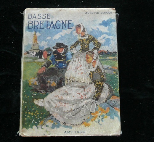 1ère édition de cet ouvrage en 2 volumes où l'écrivain Auguste DUPOUY (1872-1967) décrit les 3 départements de Basse-Bretagne (Finistère, Côtes d'Armor et Morbihan) d'avant la seconde guerre mondiale, avec rappels historiques; illustrée de 313 photos en héliogravure. 1ers plats de couvertures illustrés d'aquarelles du grand peintre et illustrateur breton Mathurin MEHEUT(1882-1958), la technique de reliure utilisée ici ayant l'avantage de les laisser visibles extérieurement. Exemplaire relié, complet des 2 volumes et de la carte, et enrichi d'une grande carte dépliante.