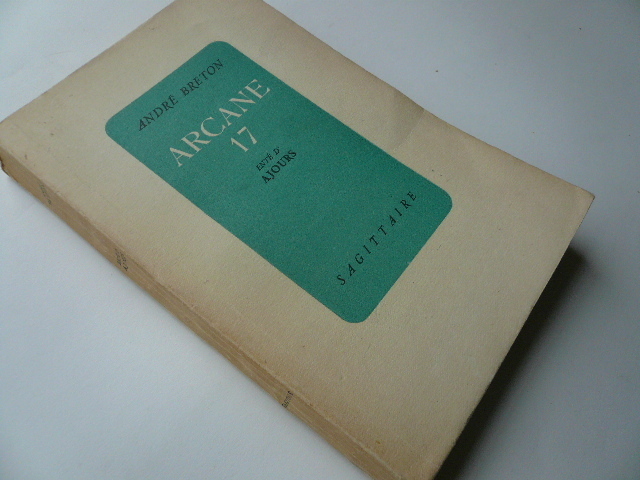 Edition en partie originale, les Ajours paraissant ici pour la première fois. Tirage à 308 exemplaires numérotés. Un des 40 sur Marais Crève-coeur, ici numéroté - signés à l'encre verte par André Breton et comportant hors texte 3 EAUX-FORTES originales de Maurice BASKINE, chacune signée. >Bel exemplaire en grande partie non coupé. Inséré le bandeau du tirage courant:" André Breton Le livre attendu suivi d'Ajours". ----- A son retour à Paris en mai 1946, André Breton est assez pressé de voir publier en France ARCANE 17 qui avait paru premièrement à New York en décembre 1944 chez Brentano's. L'écrivain avait rédigé son manuscrit d'août à septembre alors qu'il était en voyage en Gaspésie au Québec avec Elisa Claro qui allait devenir sa femme, et à qui il dédie son texte qu'il élabore sur un cahier d'écolier comme un véritable livre-objet, y mêlant différents collages d'images ou d'objets tels une feuille d'arbre. Et Breton place cette nouvelle oeuvre sous le signe de l'étoile, "...emblème de l'espérance et de la résurrection..." telle qu'on la voit sur la dix-septième lame de tarot. Arrivé à Paris Breton tente d'insuffler au mouvement cet élan de vitalité en organisant une nouvelle exposition internationale surréaliste à la galerie Maeght, et en publiant conjointement ce texte qu'il augmente d'Ajours. Il demande alors à Maurice Baskine lui aussi fasciné par l'alchimie et l'occultisme d'illustrer de gravures symboliques le tirage de tête du livre. Très bon 0