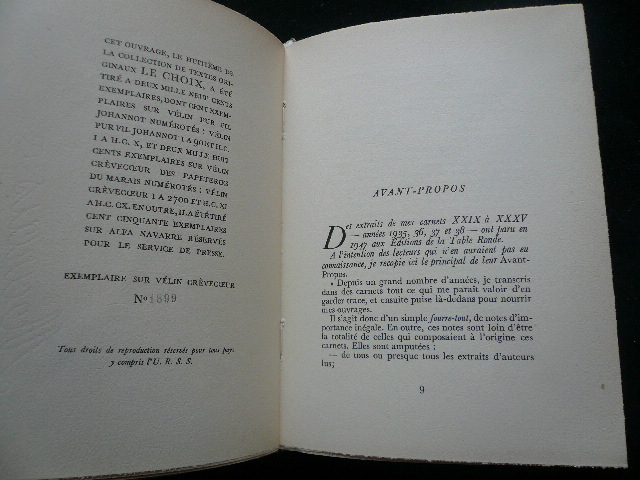 Paris, Editions de la Table Ronde 1948, 190x140mm, frontispice, 124pages, broché. Couverture rempliée. Edition originale sur papier vélin crèvecoeur des Papeteries du Marais, numérotée n.° 653 / 2700. Très bel exemplaire.